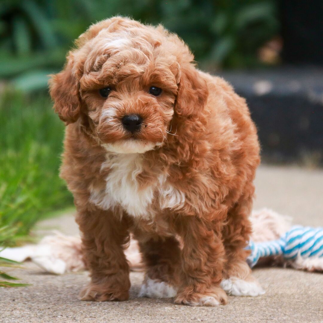 Hi, I’m Bear! I’m a 9-week-old male Poodle with a beautiful red coat, born on April 18, which makes me an Aries pup. I am ready now to plan my trip to my forever family. I’m AKC registered. I’m excited to be your loyal companion and cuddle buddy.