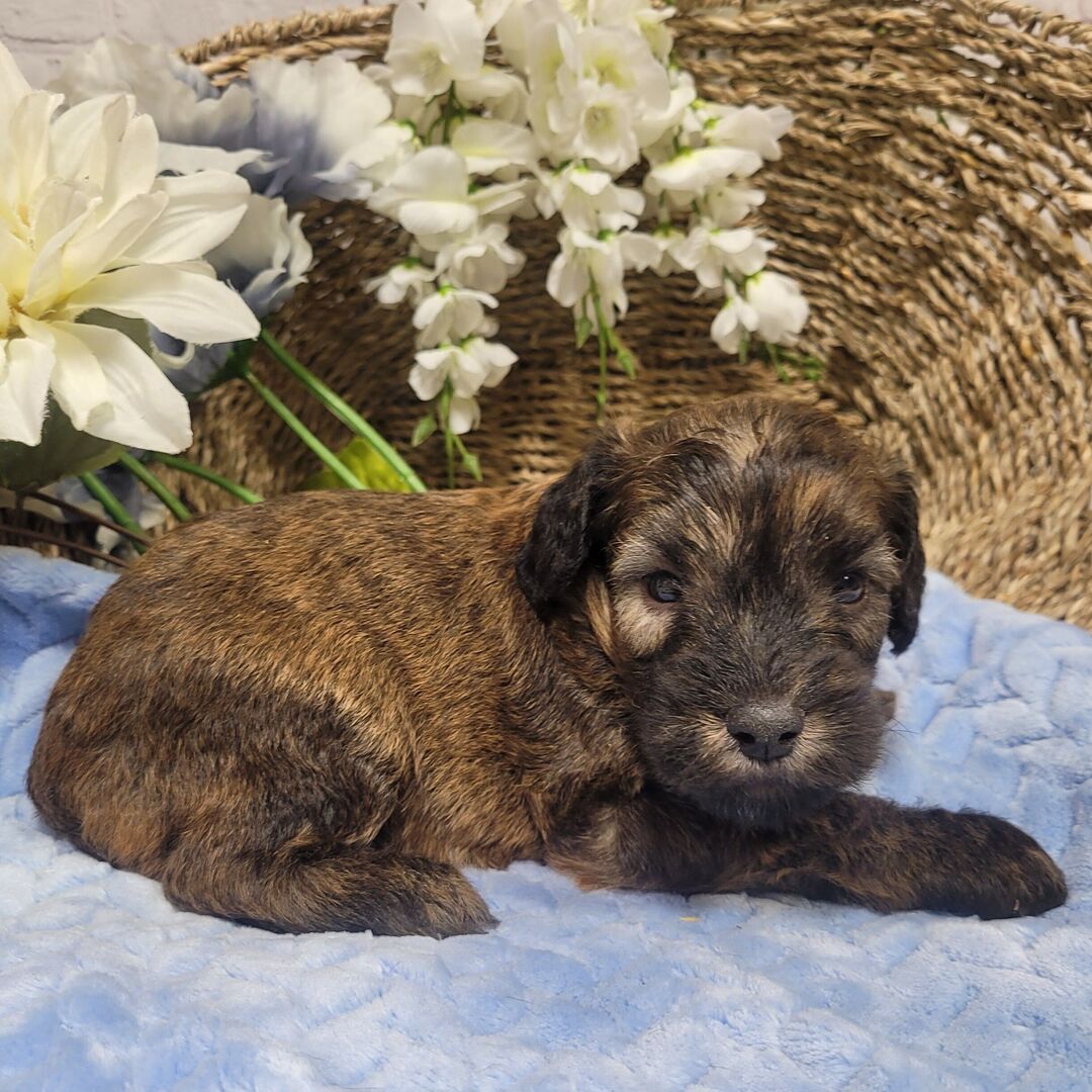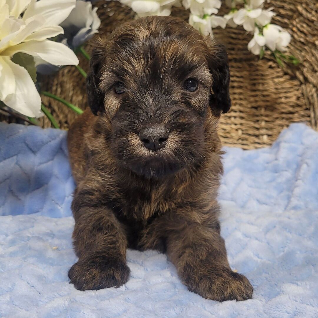 Hi, I’m Brody! I’m a 4-week-old male Whoodle with a beautiful brindle coat, born on May 25, which makes me a Gemini sign. I’ll be ready to go home to my forever family after July 20, once I’m grown enough to leave my litter. When I reach my adult size, I should weigh between 14–25 lbs. I’m ICA registered. I’m excited to be your cuddle buddy and adventure pal.
