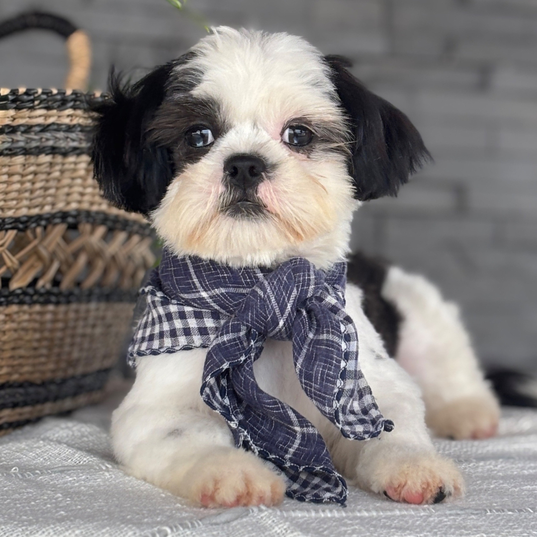 Hi, I’m Broven! I’m a 21-week-old male Shih Tzu with a beautiful black & white coat, born on January 26, which makes me an Aquarius pup. I am ready now to plan my trip to my forever family. Once I reach my adult size, I’m expected to weigh between 9–12 lbs. I’m AKC registered. I will bring love, laughter, and a bit of puppy mischief.