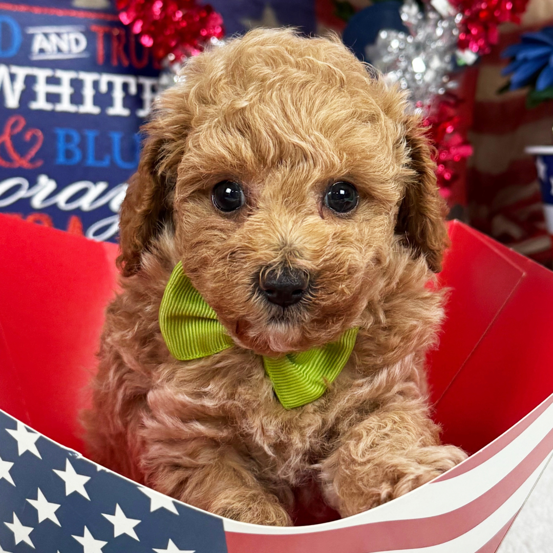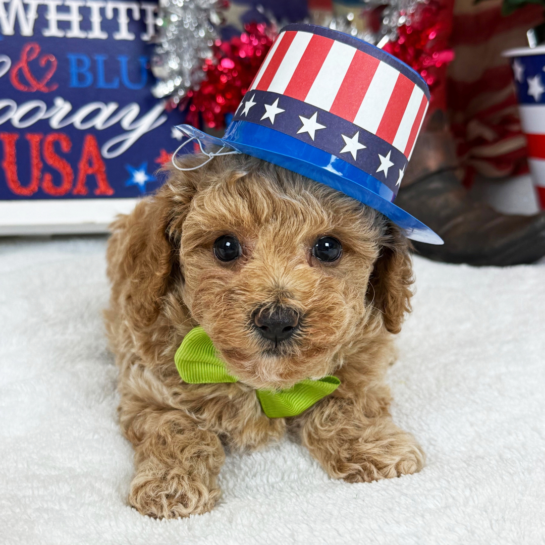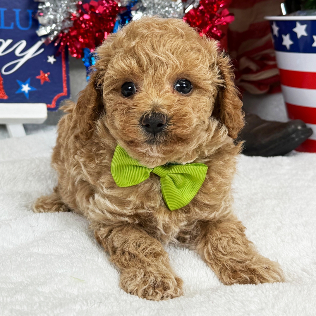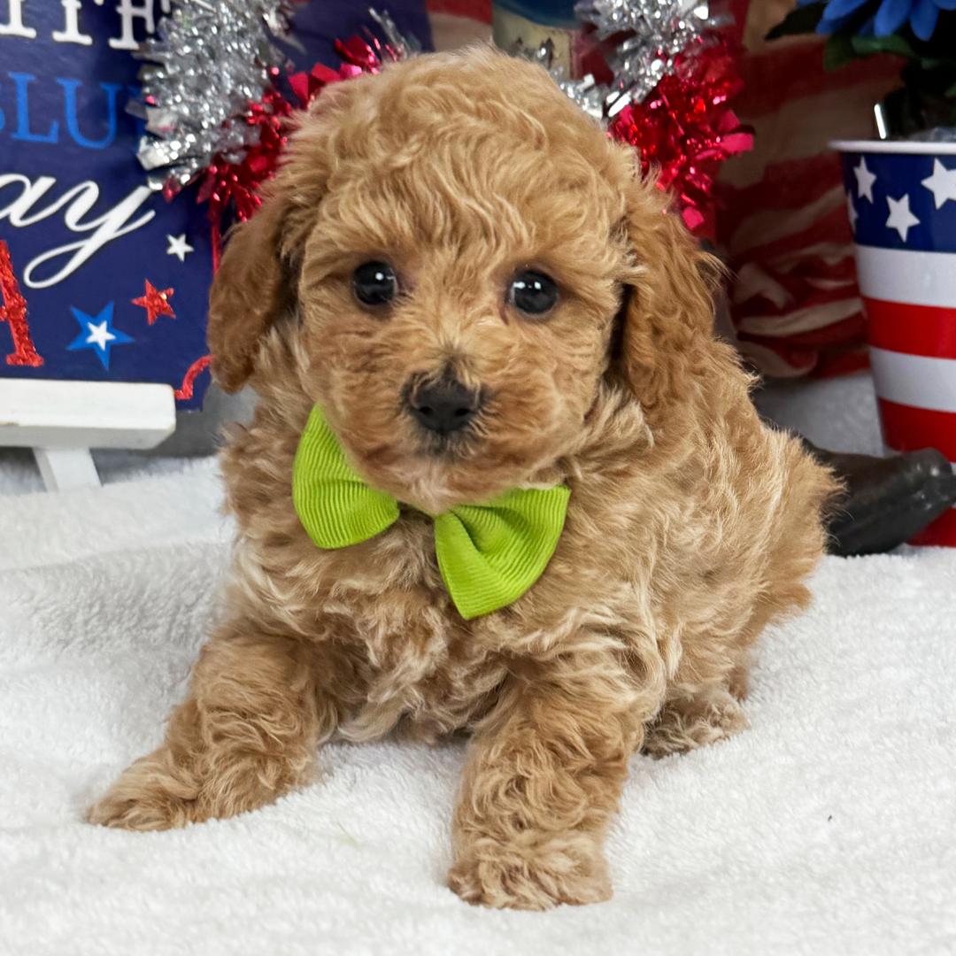 Hi, I’m Carter! I’m a 5-week-old male Maltipoo with a beautiful apricot coat, born on May 16, which makes me a Taurus sign. I’ll be ready to go home to my forever family after July 11, once I’m grown enough to leave my litter. When I reach my adult size, I should weigh between 6–8 lbs. I’m CKC registered. I will fill your home with warmth and puppy love.