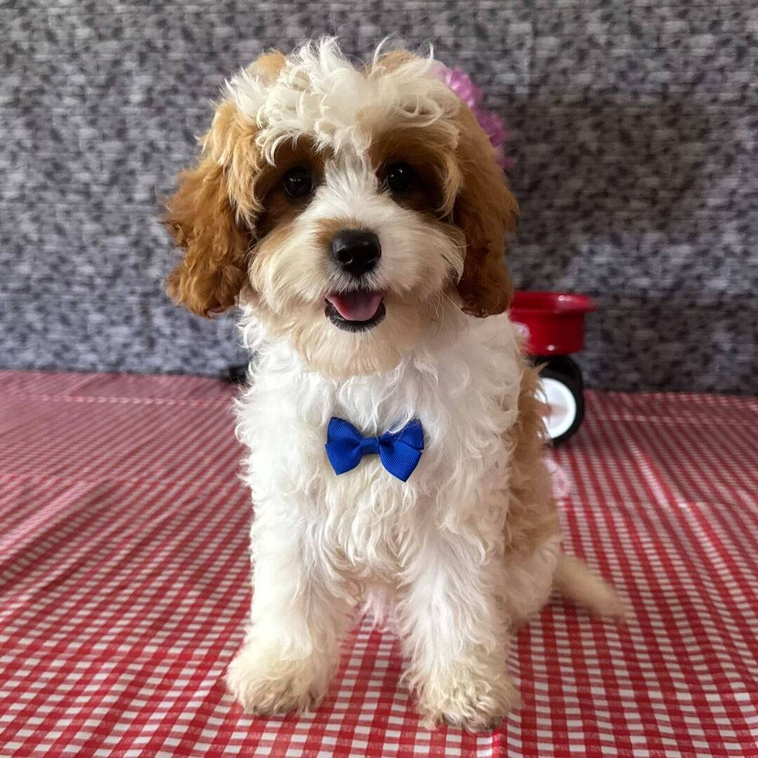 Hi, I’m Chipper! I’m a 17-week-old male Cavapoo with a beautiful apricot & white coat, born on February 27, which makes me a Pisces pup. I am ready now to plan my trip to my forever family. Once I reach my adult size, I’m expected to weigh between 10–14 lbs. I’m all set to make your days a little sweeter and your nights a lot cozier.