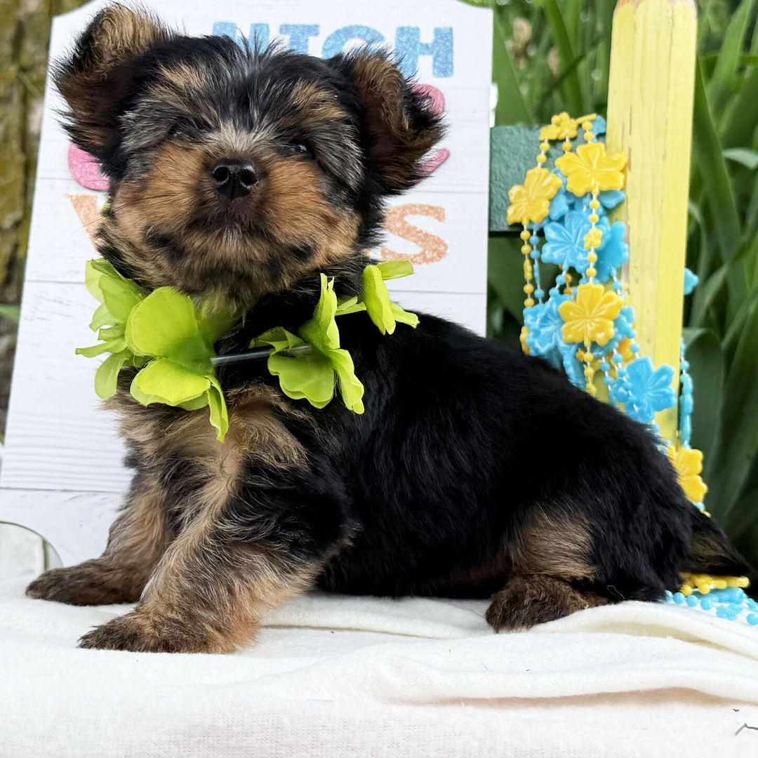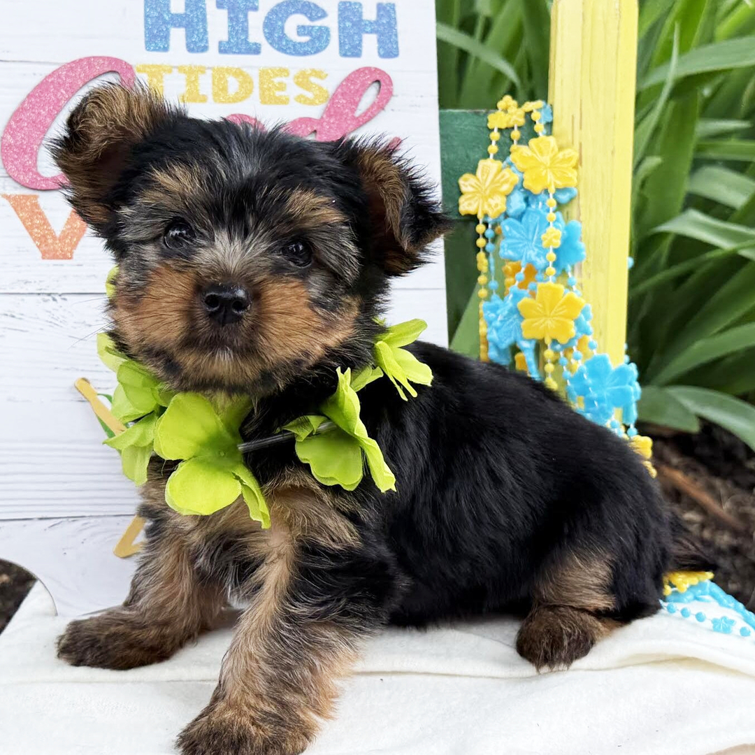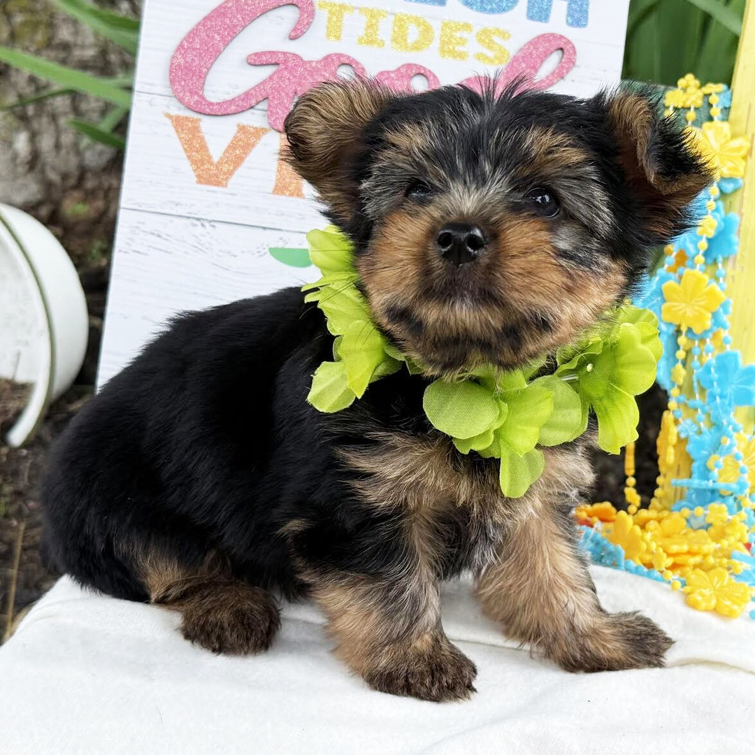 Hi, I’m Justin! I’m a 9-week-old male Yorkshire Terrier with a beautiful black & tan coat, born on April 24, which makes me a Taurus sign. I’ll be ready to go home to my forever family after June 28, once I’m grown enough to leave my litter. When I reach my adult size, I should weigh between 4.5–6 lbs. I’m AKC registered. I’m excited to bring a lot of love and a little bit of puppy chaos.