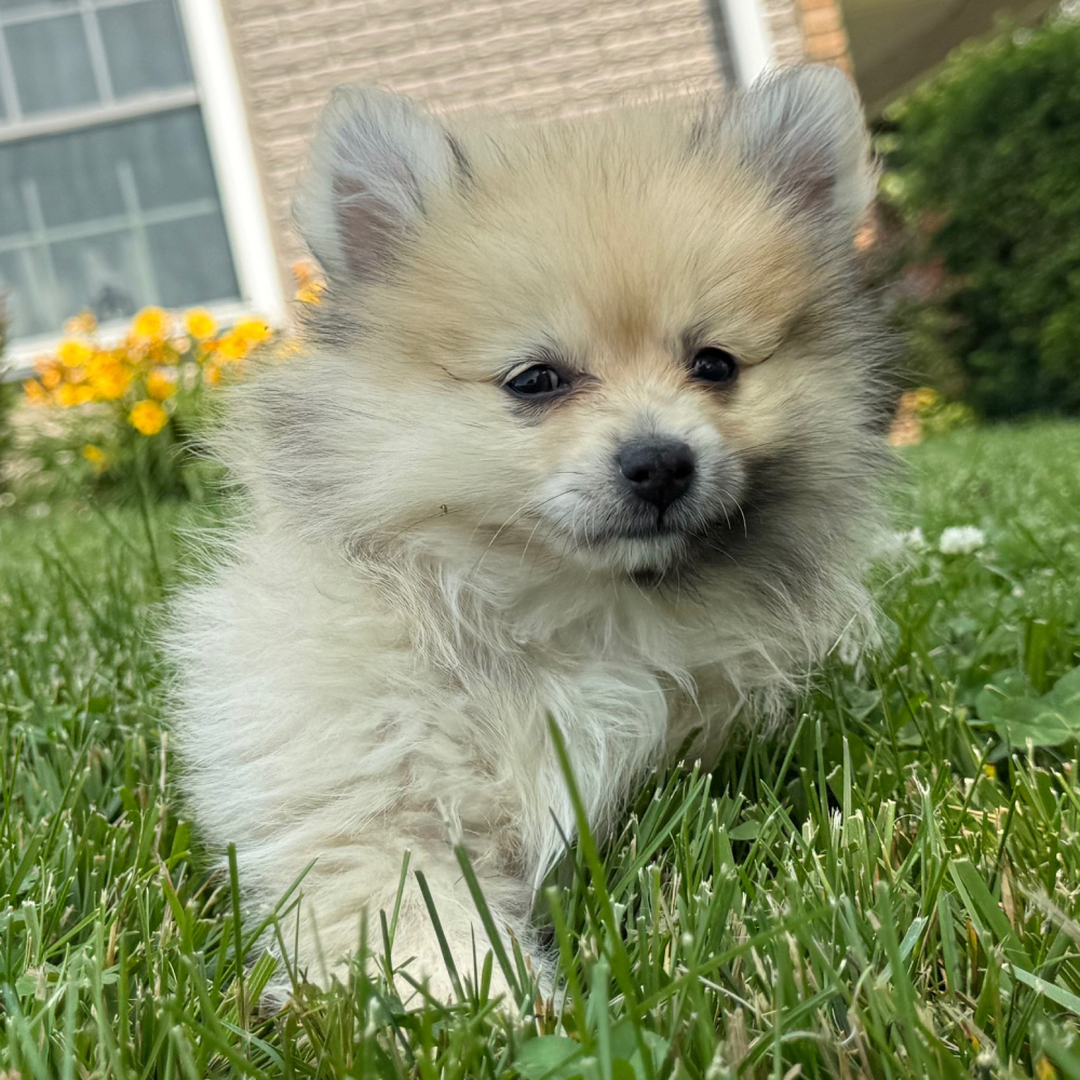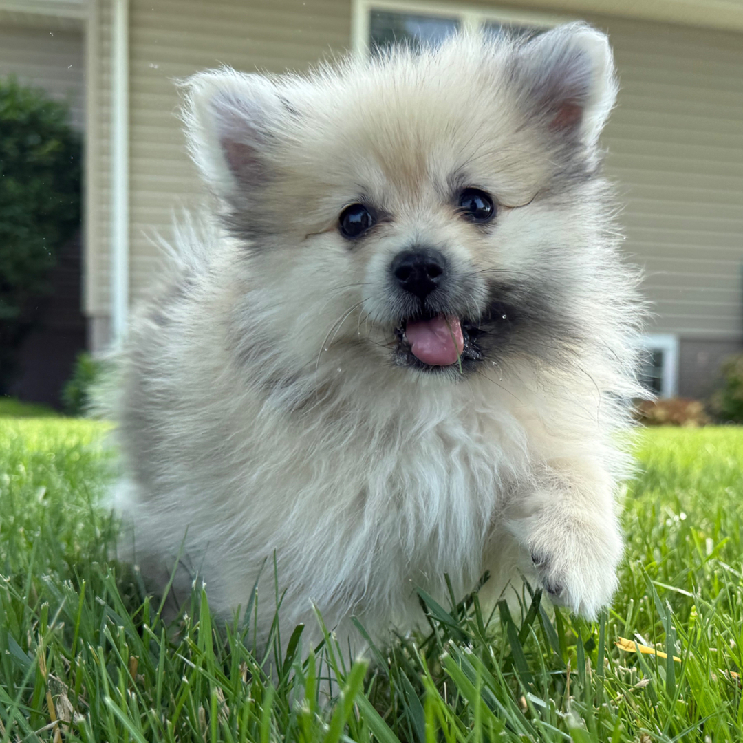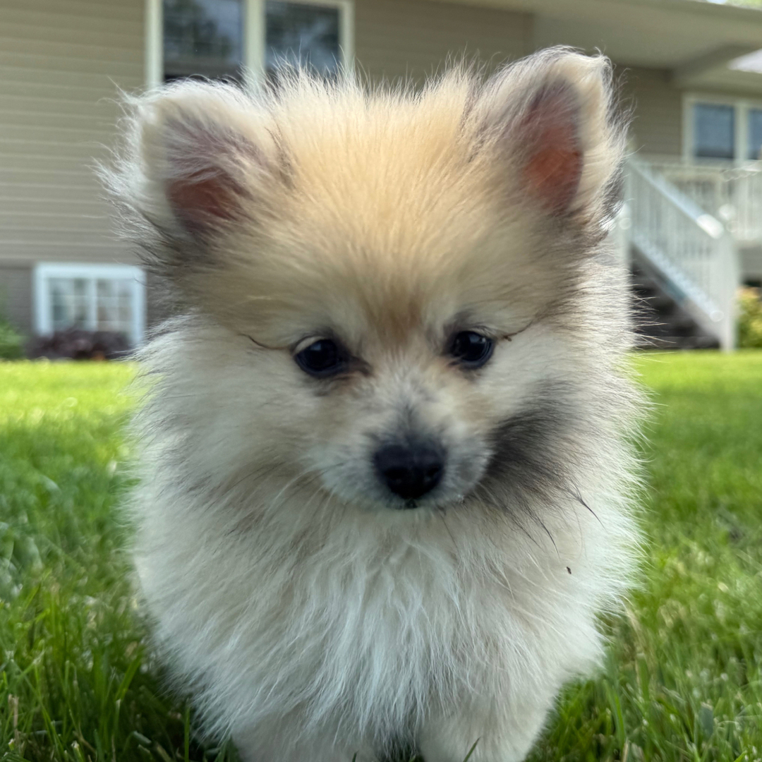 Hi, I’m Mary! I’m an 11-week-old female Pomeranian with a beautiful blue merle coat, born on April 8, which makes me an Aries sign. I’ll be ready to go home to my forever family after June 4, once I’m grown enough to leave my litter. When I reach my adult size, I should weigh between 5–8 lbs. I’m ACA registered. I’m ready to make every day a little brighter with my puppy love.