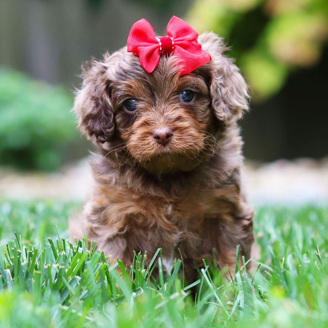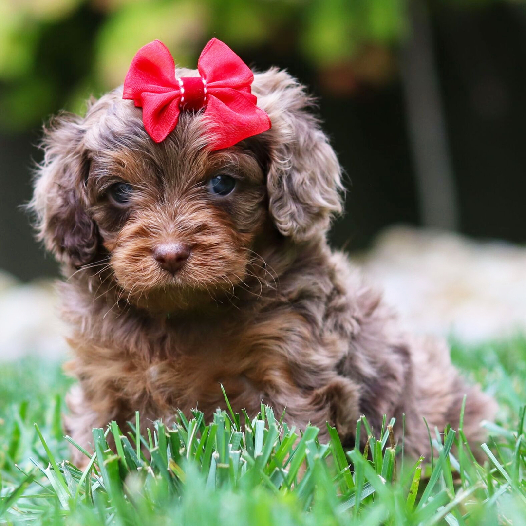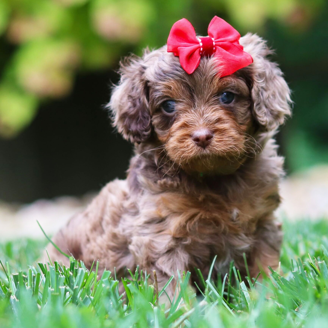 Hi, I’m Ms Mocha! I’m a 6-week-old female Cavapoo with a beautiful chocolate merle coat, born on May 11, which makes me a Taurus sign. I’ll be ready to go home to my forever family after July 6, once I’m grown enough to leave my litter. When I reach my adult size, I should weigh between 12–14 lbs. I can’t wait to bring my wagging tail and loving heart to your home.