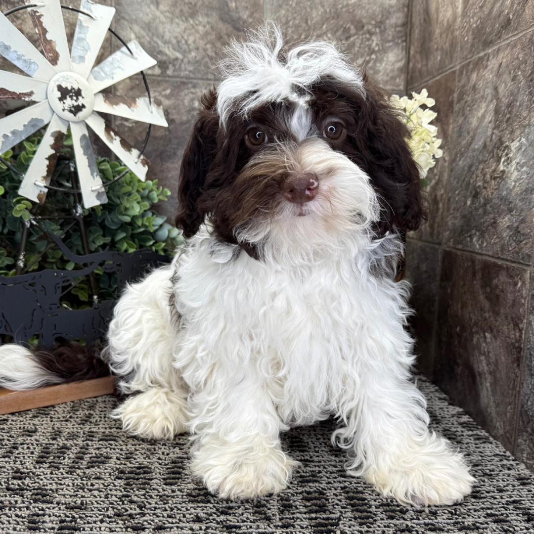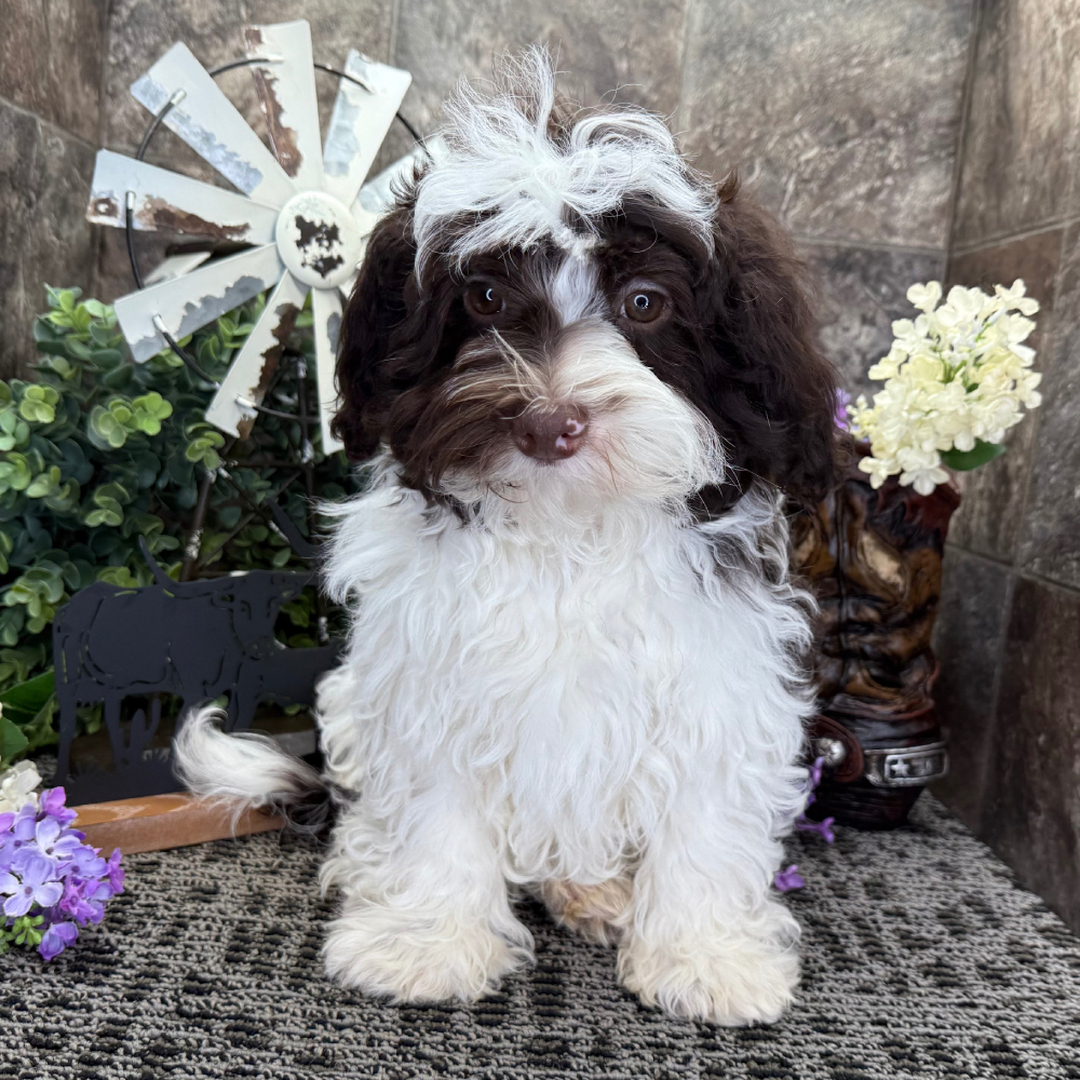 Hi, I’m Panda! I’m a 17-week-old male Havanese with a beautiful chocolate coat, born on February 20, which makes me a Pisces pup. I am ready now to plan my trip to my forever family. Once I reach my adult size, I’m expected to weigh between 10–16 lbs. I’m AKC registered. I’m ready to make every day a little brighter with my puppy love.
