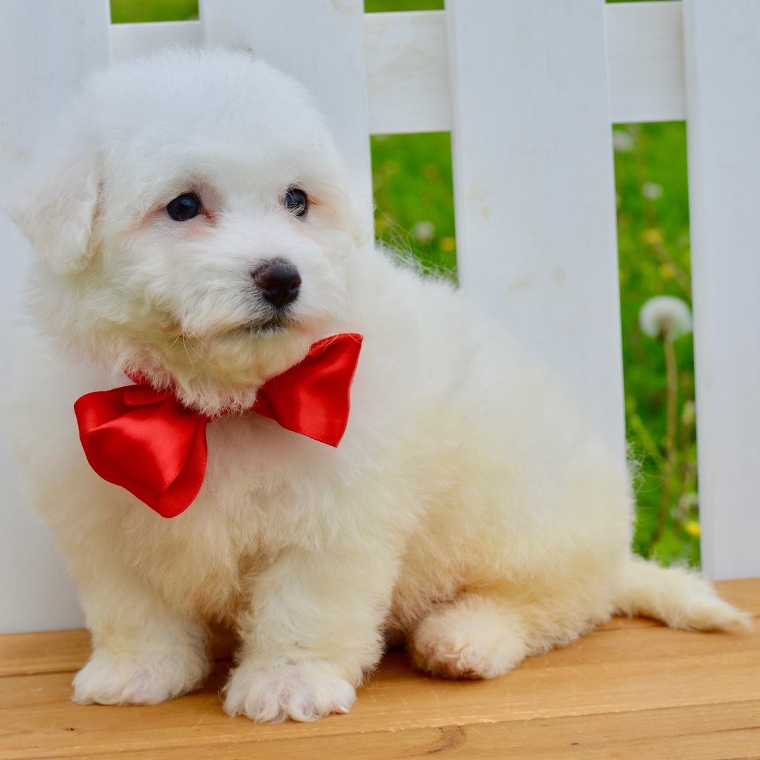 Hi, I’m Prince! I’m an 8-week-old male Bichon Frise with a beautiful white coat, born on April 27, which makes me a Taurus pup. I am ready now to plan my trip to my forever family. Once I reach my adult size, I’m expected to weigh between 9–12 lbs. I’m APRI registered. I’m looking forward to being your sunshine on a rainy day.