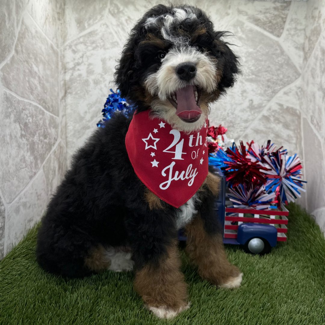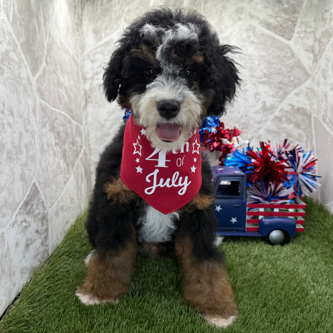 Hi, I’m Quest! I’m a 13-week-old male Bernedoodle with a beautiful black, tan & white coat, born on March 23, which makes me an Aries pup. I am ready now to plan my trip to my forever family. My puppy eyes are ready to melt your heart.