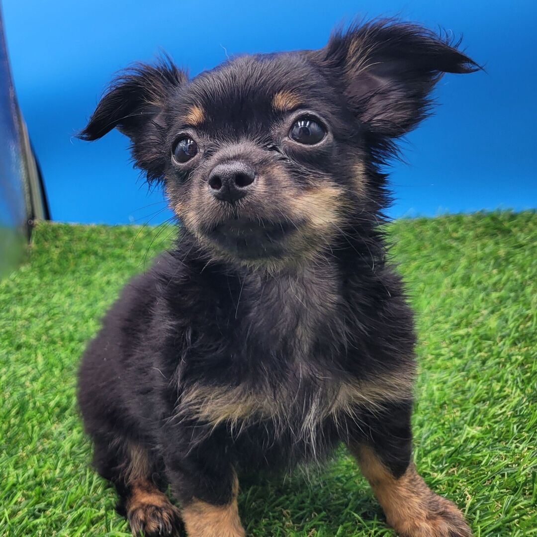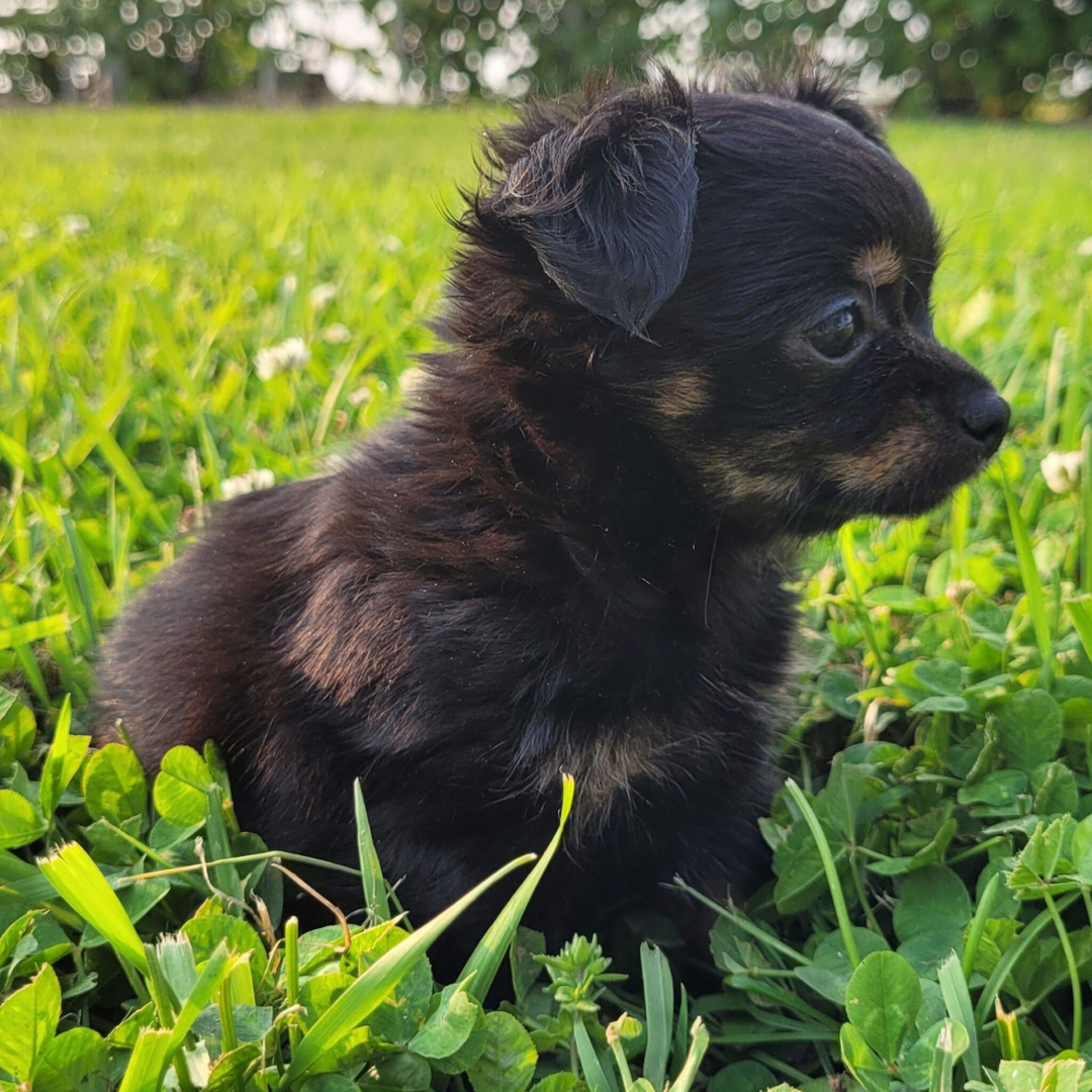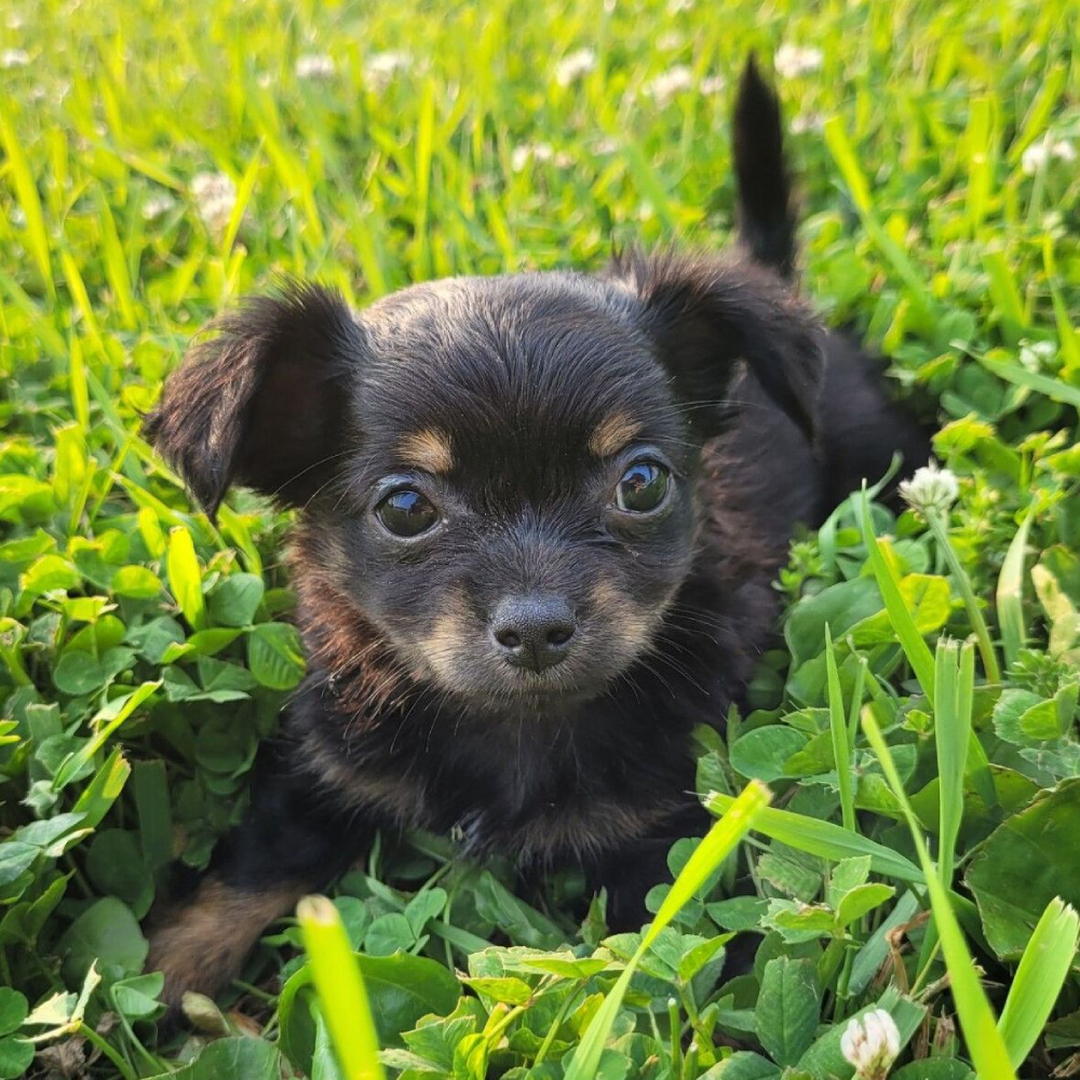 Hi, I’m Rosy! I’m a 10-week-old female Chihuahua with a beautiful black & tan coat, born on April 14, which makes me an Aries sign. I’ll be ready to go home to my forever family after June 9, once I’m grown enough to leave my litter. When I reach my adult size, I should weigh between 6–9 lbs. I’m APRI registered. I’m a curious pup who will make every day an adventure.