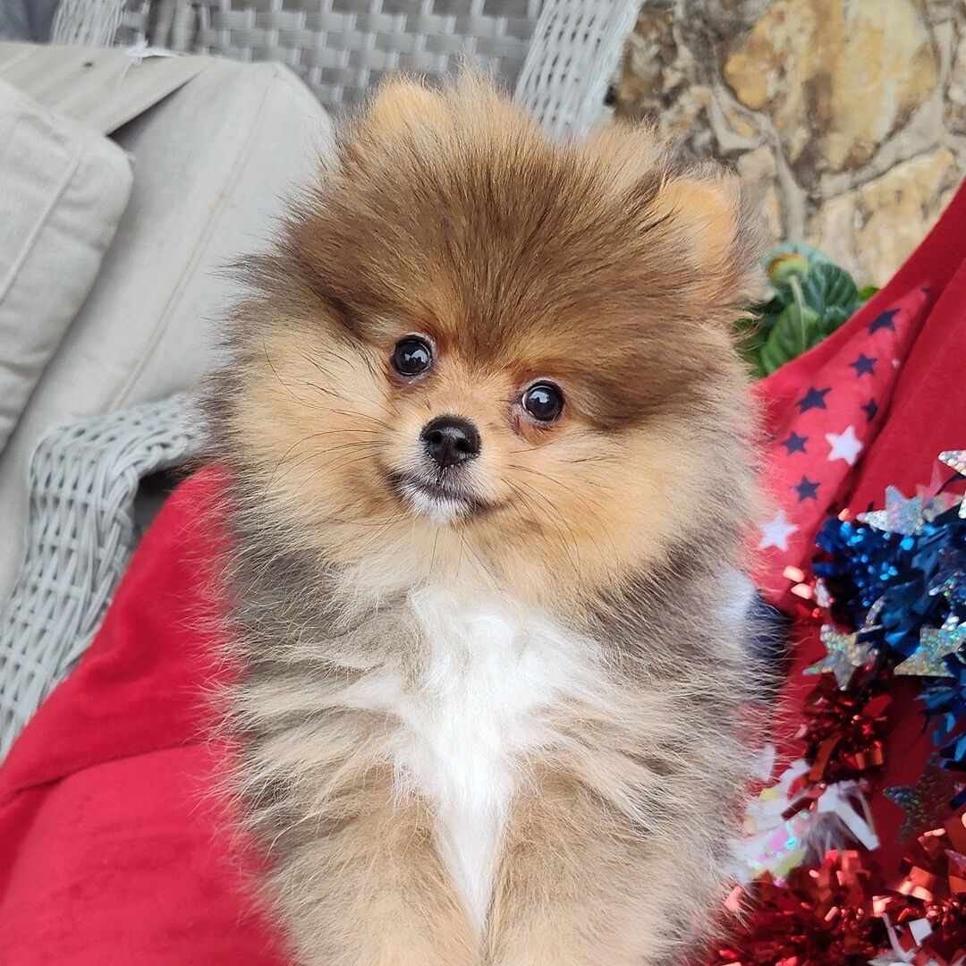 Hi, I’m Rusty! I’m a 15-week-old male Pomeranian with a beautiful tri-colored coat, born on March 13, which makes me a Pisces pup. I am ready now to plan my trip to my forever family. Once I reach my adult size, I’m expected to weigh between 4.5–6 lbs. I’m CKC registered. My tail wags for the thought of being part of a lovely family.