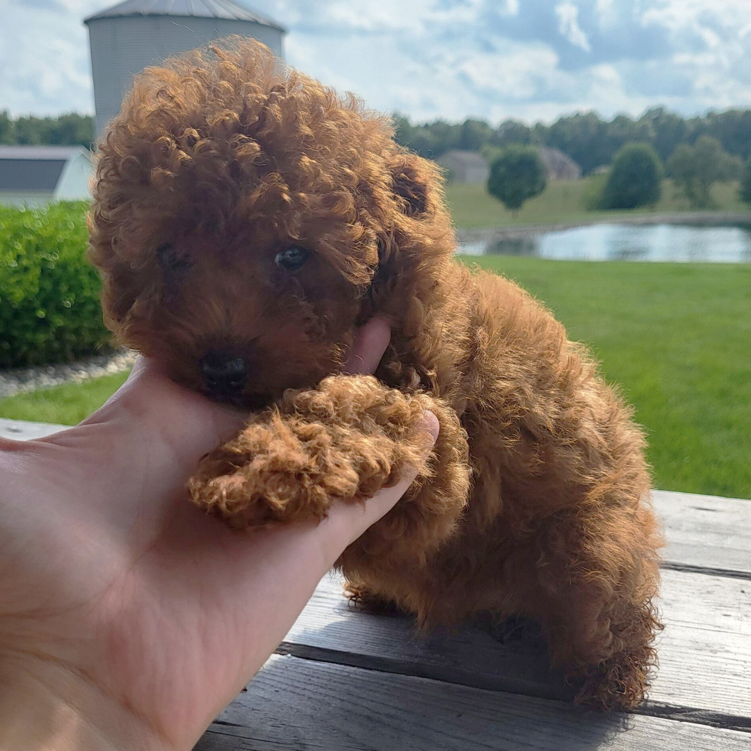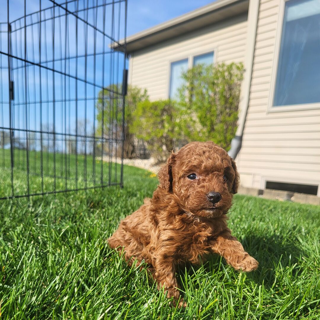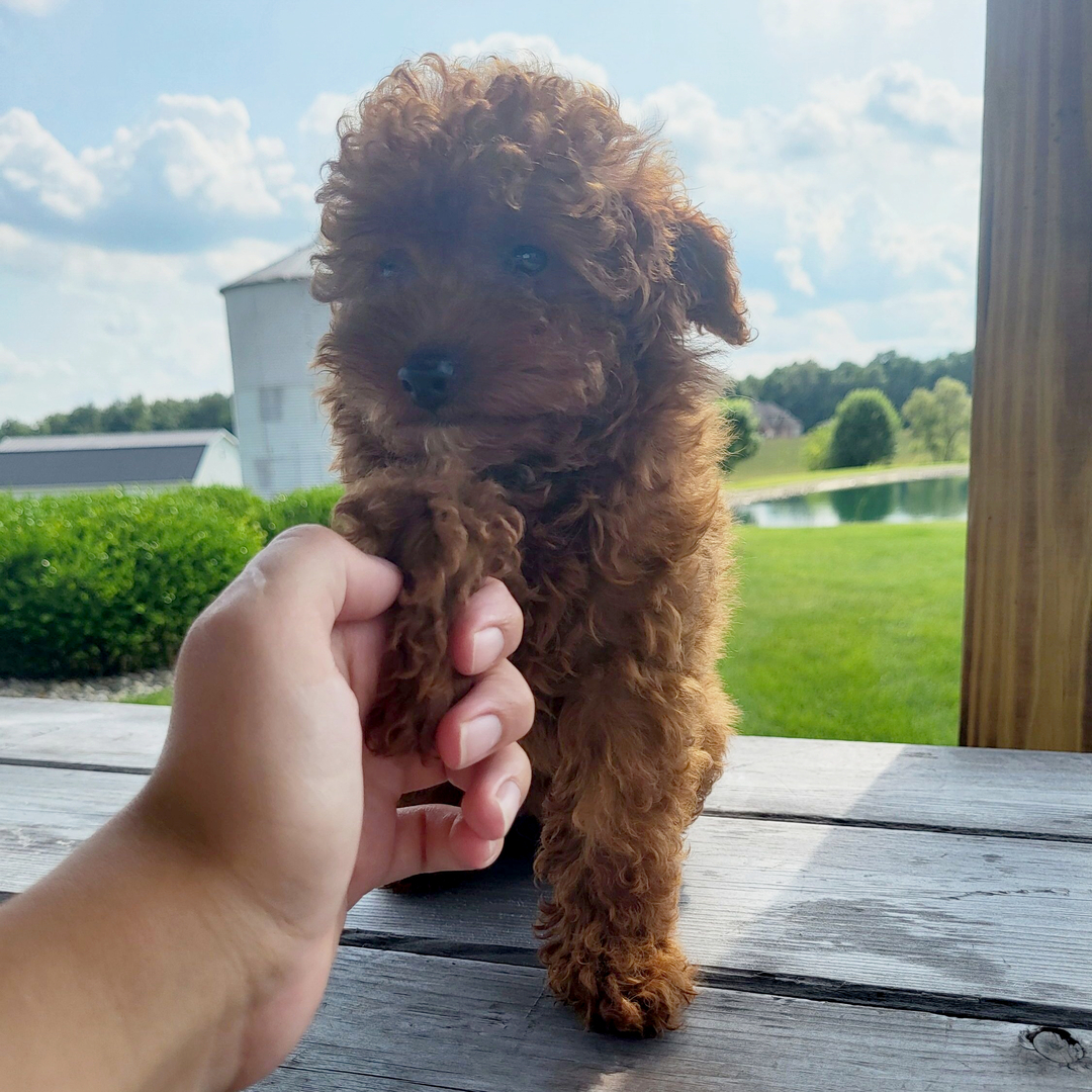 Hi, I’m Sunray! I’m a 12-week-old male Poodle with a beautiful red coat, born on March 28, which makes me an Aries pup. I am ready now to plan my trip to my forever family. I’m AKC registered. I want you to want me, I need you to need me, and I’d love you to love me… forever together.