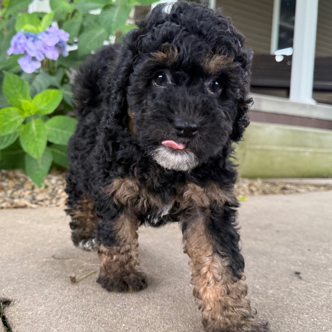 Hi, I’m Vince! I’m an 8-week-old male Goldendoodle with a beautiful black & tan coat, born on April 25, which makes me a Taurus pup. I am ready now to plan my trip to my forever family. I’m ICA registered. I’m excited to be the little bundle of joy you’ve been looking for.