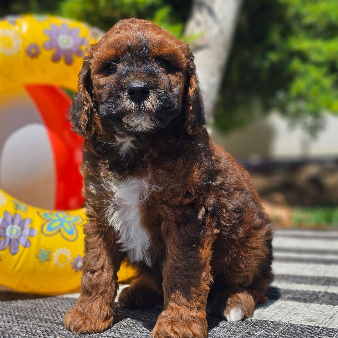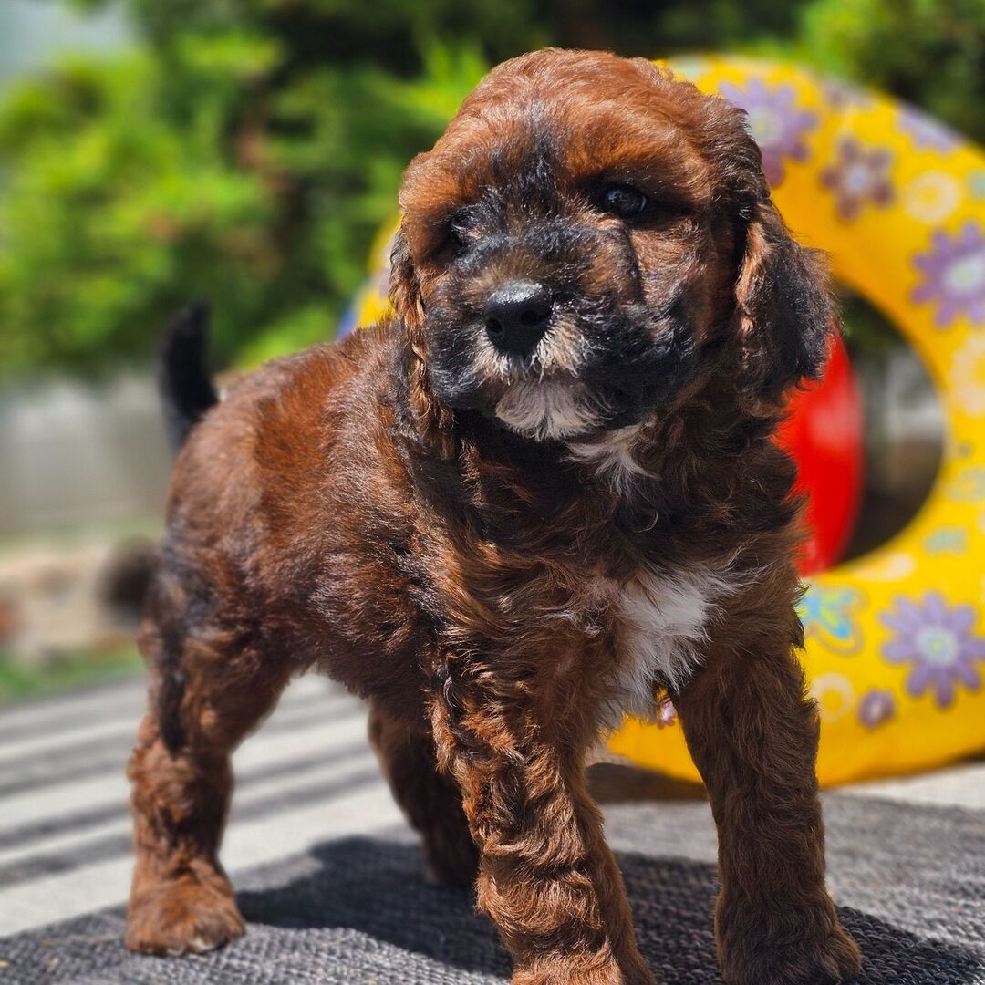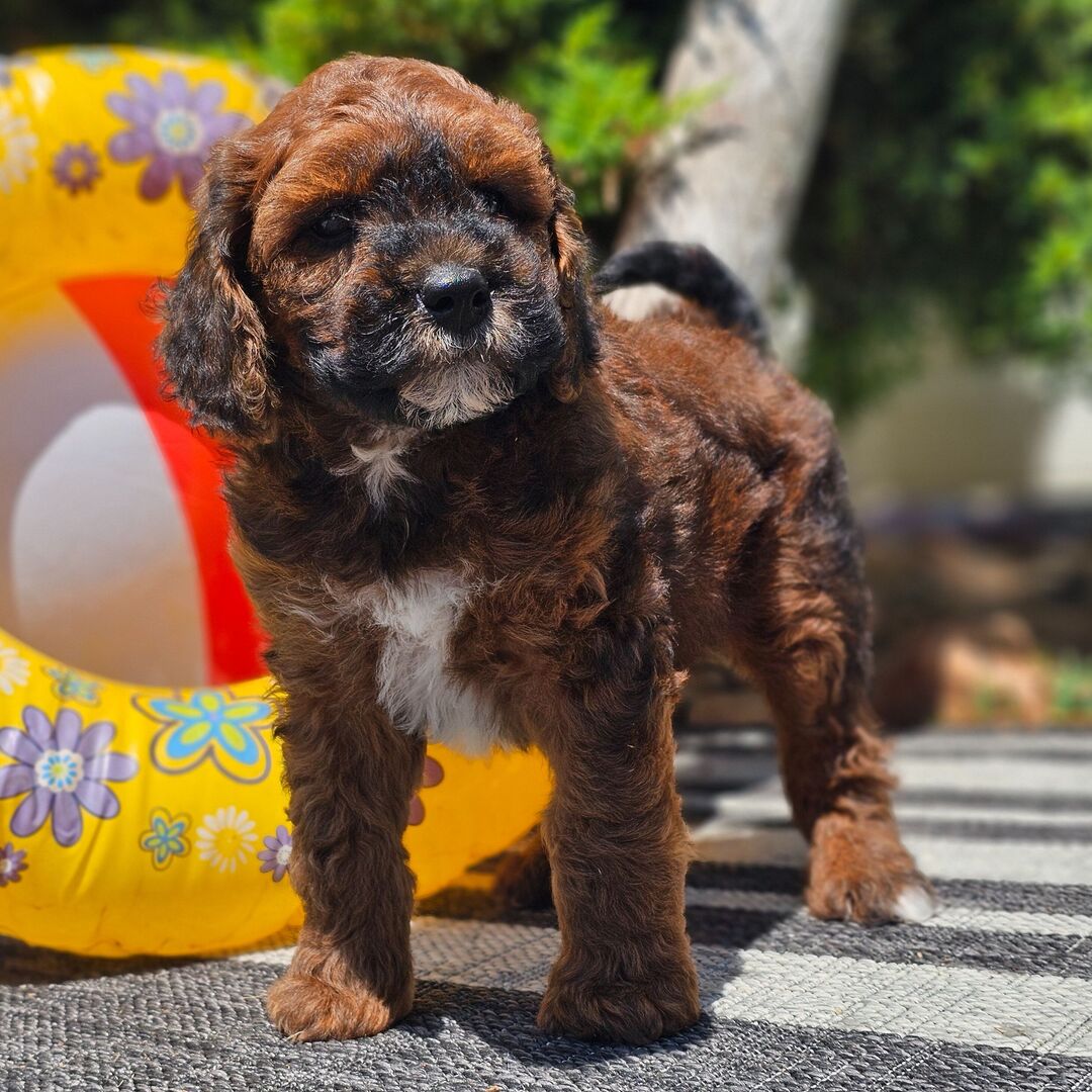 Hi, I’m Whoopi! I’m an 8-week-old female Whoodle with a beautiful sable coat, born on April 28, which makes me a Taurus pup. I am ready now to plan my trip to my forever family. Once I reach my adult size, I’m expected to weigh between 22–35 lbs. I’m a cuddle expert and a professional tail-wagger.